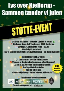 Kom og vær med til at lyse Kjellerup op i en magisk aften fyldt med musik, fællesskab og velgørenhed! Den 4. oktober kl. 19.00 åbner vi dørene til Kjellerup Hallen for Støtteeventen ‘Lys over Kjellerup – Sammen tænder vi julen’.