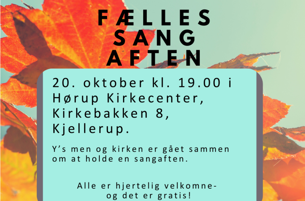 Y's men og kirken er gået sammen om at holde en sangaften. Kom og lær nye sange fra Højskolesangbogen og ønsk dem, du gerne selv vil synge. Kaffe og kage serveres midtvejs. Erik Tind Kristensen fra Y's men og organist Alex Ahn leder slagets gang. Alle er hjertelig velkomne!